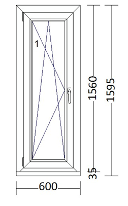 Enokrilno okno 600 x 1.560 mm