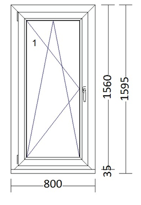 Enokrilno okno 800 x 1.560 mm