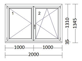 Dvokrilno okno 2.000 x 1.310 mm